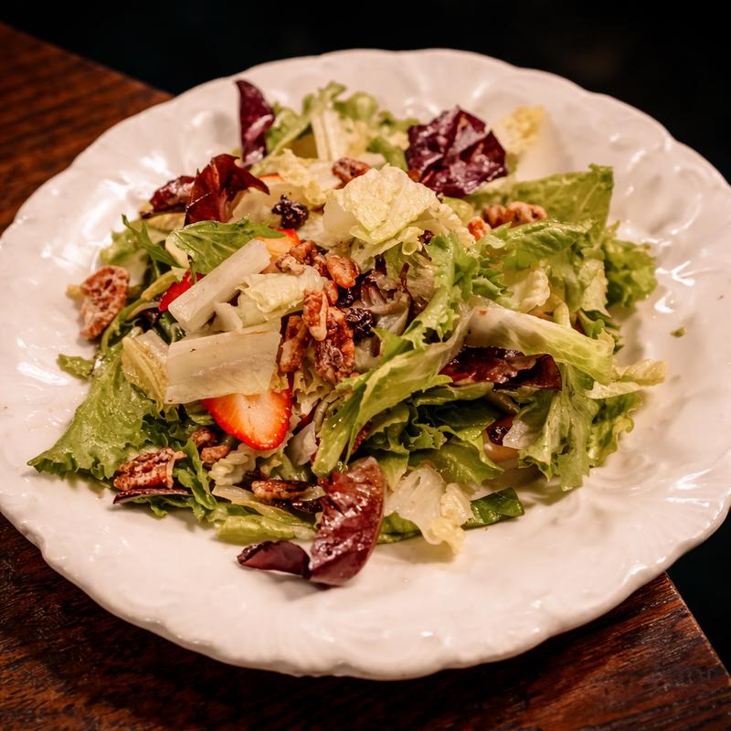 Mixed greens, spicy pecans, & seasonal fruit with your choice of white balsamic or roquefort blue cheese dressing