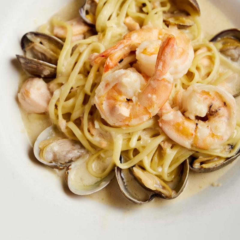 Salmon, clams & prawns with a choice of a light cream sauce or marinara.
