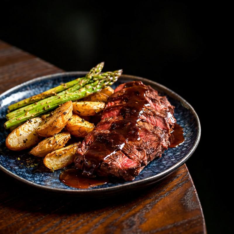 Fingerling potatoes, grilled asparagus & bordelaise sauce